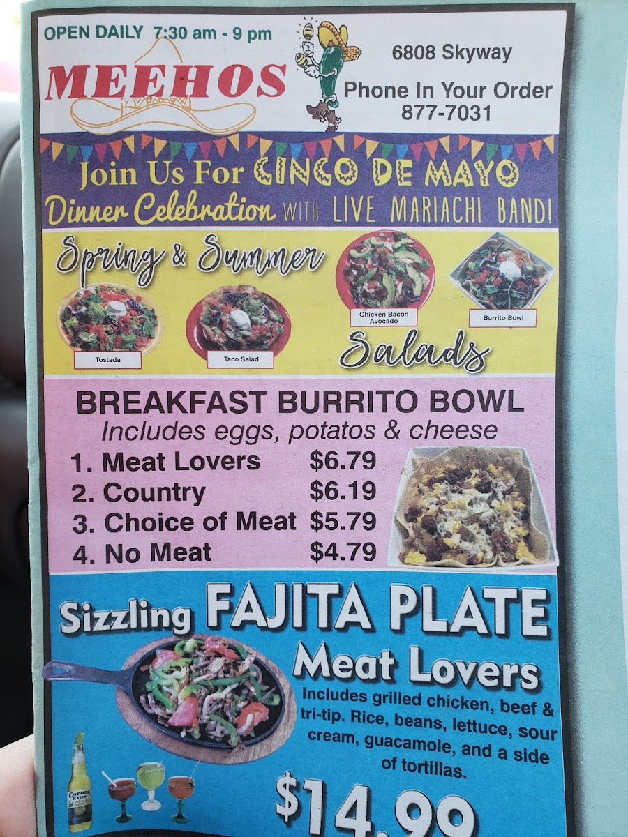 Welcome to Meehos Mexican Restaurant, nestled in the heart of Paradise, California. This vibrant eatery serves up a delightful array of authentic Mexican dishes that cater to all taste buds. Breakfast options like Huevos Con Chorizo and the indulgent Meat Lovers Quesadilla set the tone for a satisfying start, complemented by their renowned milkshakes, including the creamy horchata and classic root beer flavors.